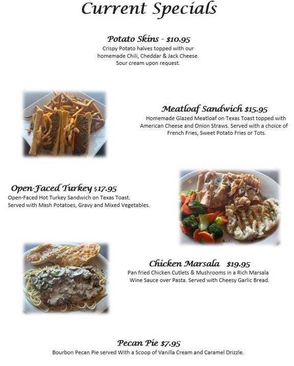 We started with a desire to help serve our neighbors by offering a restaurant with a friendly atmosphere where everybody knows everybody, excellent service, great traditional American cuisine, live entertainment, and a local watering hole for our friends and neighbors.